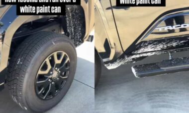 Podczas testu jazdy w Arizonie w USA, kobieta niechcący „spersonalizowała” zupełnie nową Toyotę Tacoma, przejeżdżając przez puszkę z białą farbą.