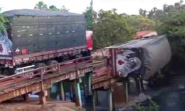 Imponujące wideo uchwyciło moment, w którym ciężarówka spadła do rzeki w stanie Maranhão po zawaleniu drewnianego mostu w piątek (24).